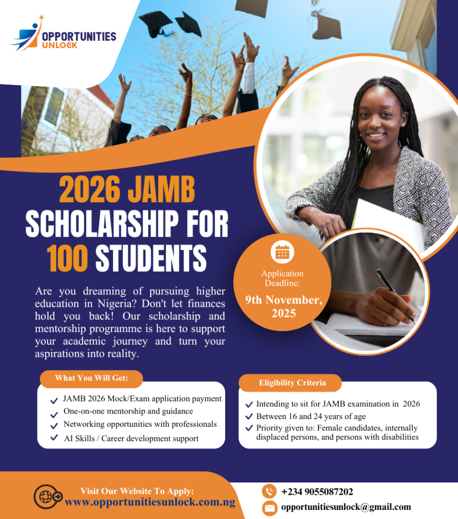 Open the JAMB Scholarship program page and complete the application form. Shortlisted candidates will be contacted via email.